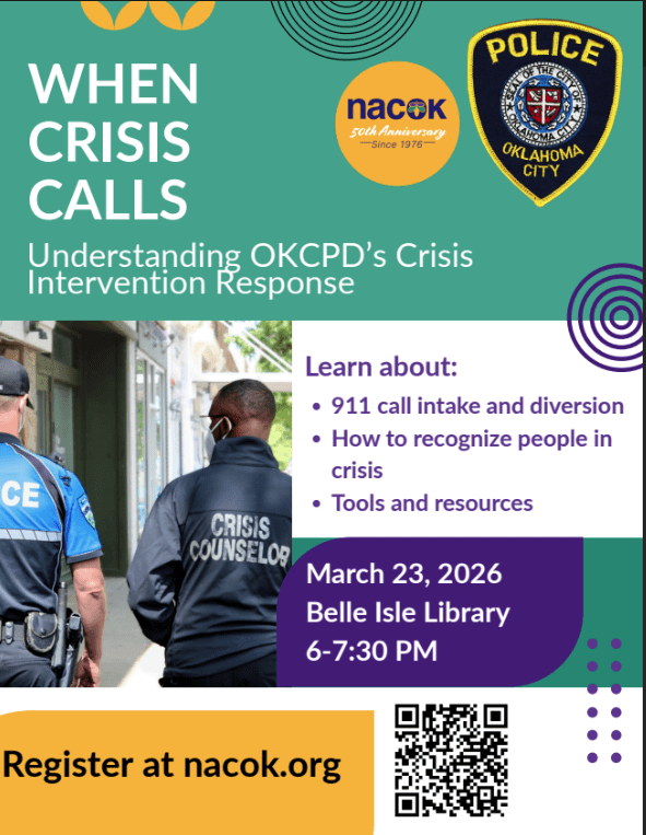 MSgt Jason Burgess – Oklahoma Police Department – Hefner Division – Police Community Relations has invited us to come to a meeting at the Belle Isle Library on March 23, 2026 from 6-7:30. Click on the QR code to register or go to the Neighborhood Alliance (NACOK.org) website.