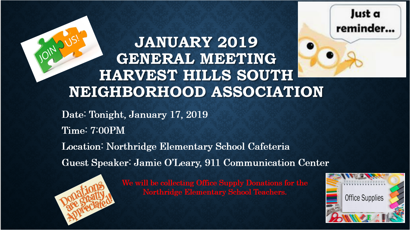 Neighborhood meeting tonight at 6:30pm at Northridge Elementary cafeteria.