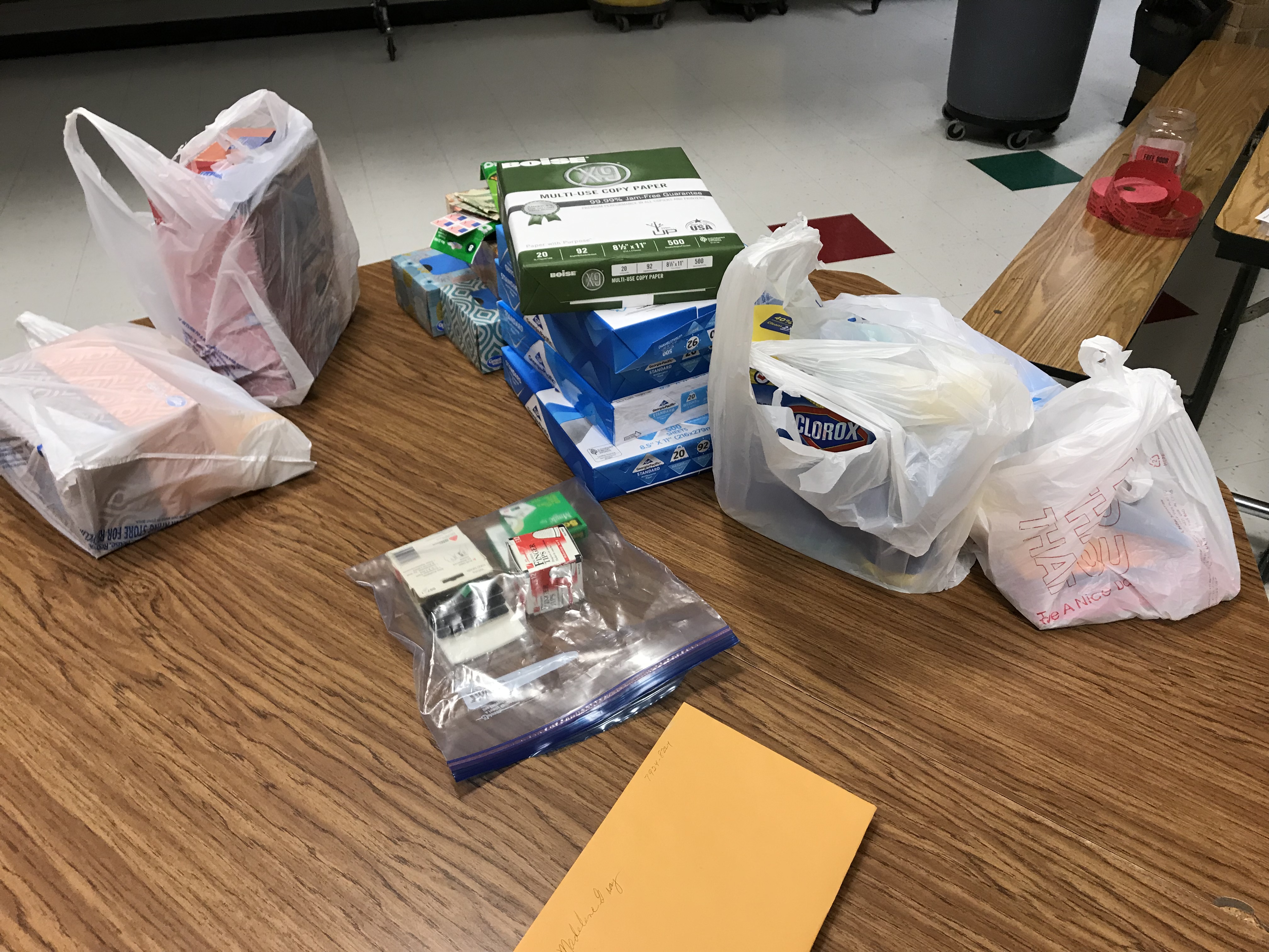 Please bring office supplies to donate to the school teachers & if you have any paper bags that we can give to the Salvation Army food pantry. These donations are greatly appreciated!
